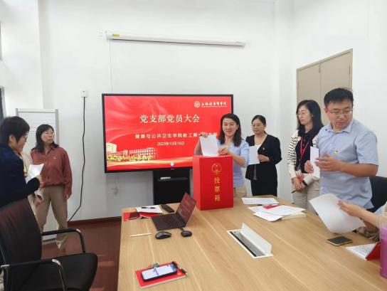 为进一步加强基层党组织建设,提升基层党组织政治功能和组织功能,根据《中国共产党章程》《中国共产党基层组织选举工作条例》《中国共产党支部工作条例(试行)》《中国共产党普通高等学校基层组织工作条例》和校党委组织部《中共上海健康医学院委员会基层党组织换届选举工作实施办法》等有关规定,在学校党委的领导下,健康与公共卫生学院于2023年9月27日起启动党支部换届选举工作。至10月18日,健康与公共学院教工第一党支部、教工第二党支部、学生党支部等3个党支部分别召开了党员大会,选举产生了新一届委员会,圆满完成了党支部换届选举工作。