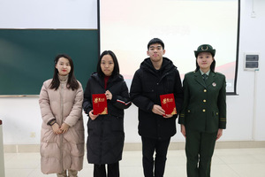 接下来,辅导员姚俊阁老师为优秀教官孔芳圆,优秀学员张李轩、曹欧文同学颁发“优秀教官”和“优秀学员”证书。