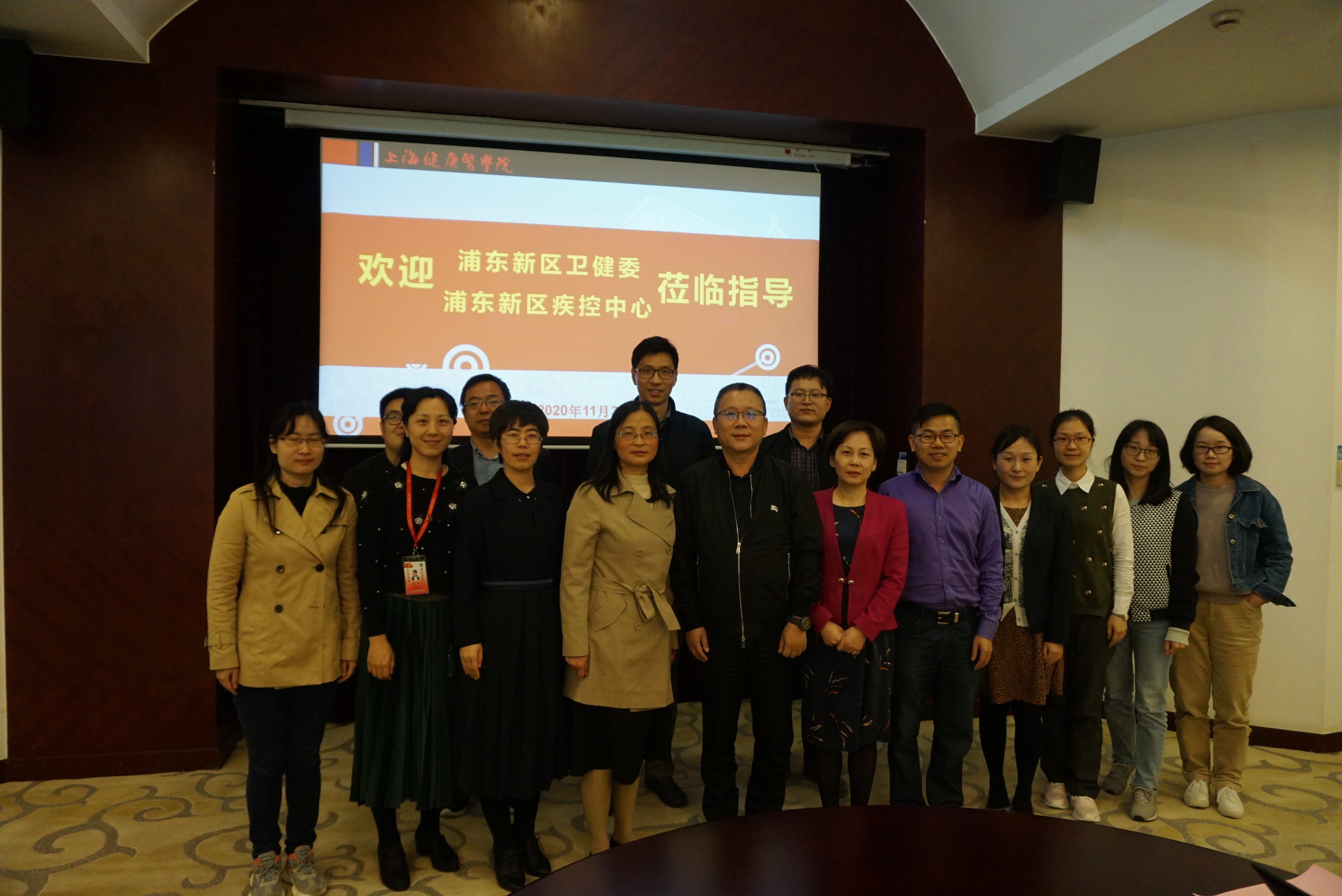 2020年11月3日下午浦东新区卫健委副主任张伟、浦东新区疾控中心主任周一心率队来访。