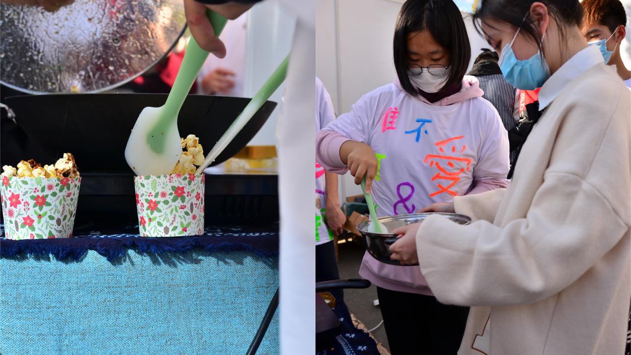 活动当天,食品卫生与营养专业的展台初看不起眼,但很快吸引了很多同学的眼球,帅哥美女们纷纷驻足,排起了长龙,围着展台,期待着美食入口。