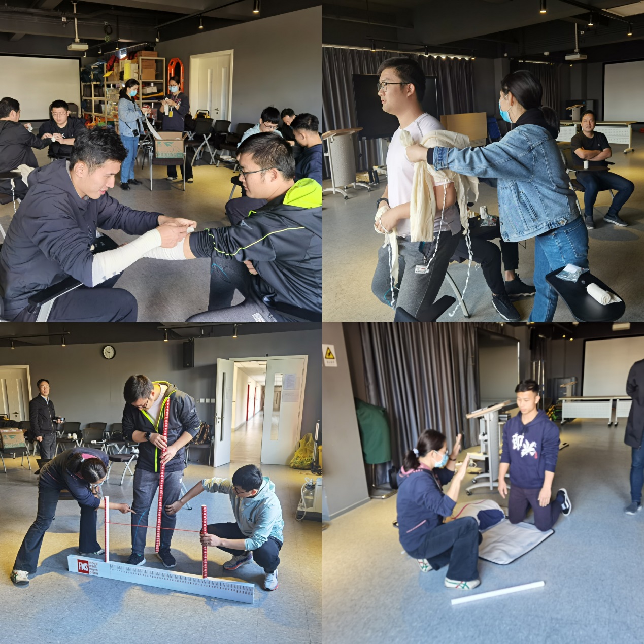 在临床实训中心互动实训环节,上海光明中学的教师们认真向秦建晔、孙瑷沁、张少一老师学习了BLS急救心肺复苏的规范操作,一一反复练习,力求学会有效的心肺复苏方法;并向陈千红老师学习了运动损伤处理及康复,向王丽岩老师学习了预防运动损伤的功能动作筛查。健康医学院的教师认真示范,并帮助来学习的教师们纠正动作,希望每位教师所学的“本领”在未来能派上用场。