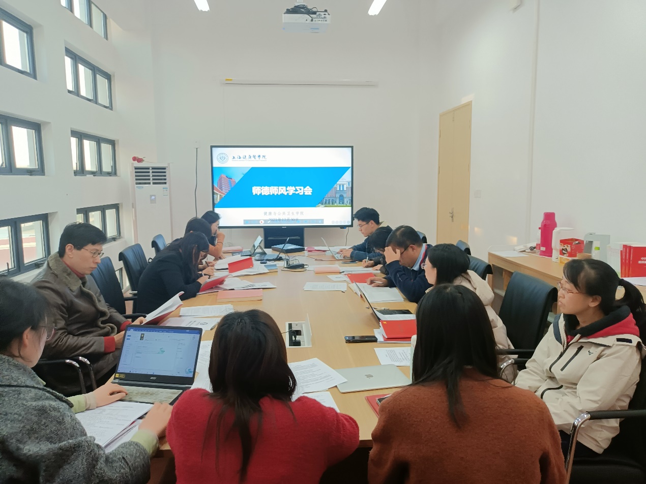 为深入贯彻习近平总书记关于教师队伍建设特别是教师思想政治工作的系列重要讲话精神以及教育部教师思想政治和师德师风建设工作会议精神,并且落实学校进一步做好教师思想政治和师德师风建设工作的通知,研究落实健康与公共卫生学院教师思想政治和师德师风建设工作,2021年12月30日,在新南苑4号楼303会议室,召开健康与公共卫生学院思想政治和师德师风建设推进工作会议。会议由党总支书记陈泓主持,健康与公共卫生学院全体教师参加会议。