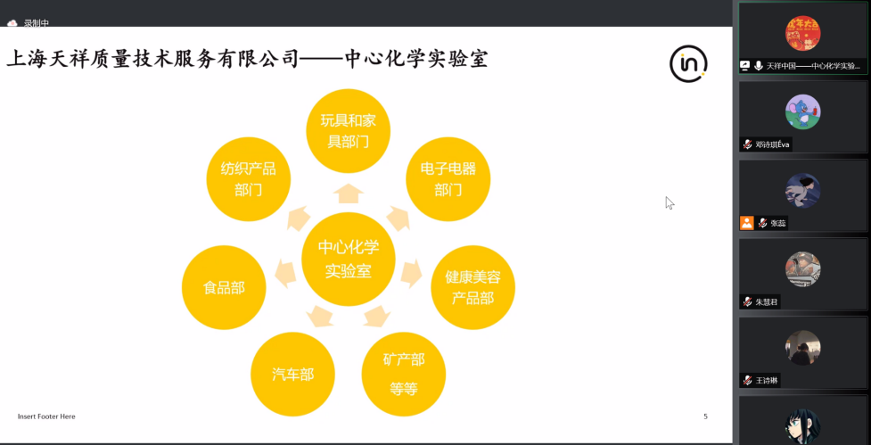 郑娟专家是上海天祥质量技术服务有限公司中心化学实验室的高级经理,她主要从事技术支持与研发,曾参与过多部相关标准的撰写,发表过多篇论文。讲座上,她介绍了Intertek天祥集团的相关情况。又以上海天祥质量技术服务有限公司中心化学实验室为例,向大家介绍了中心化学实验室的相关情况,包括实验室概况、实验室认可情况、相关流程、涉及标准、主要的仪器设备、实验室参与的项目等。